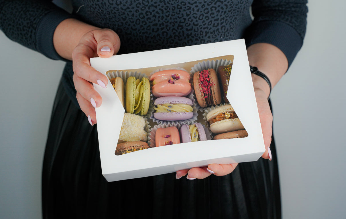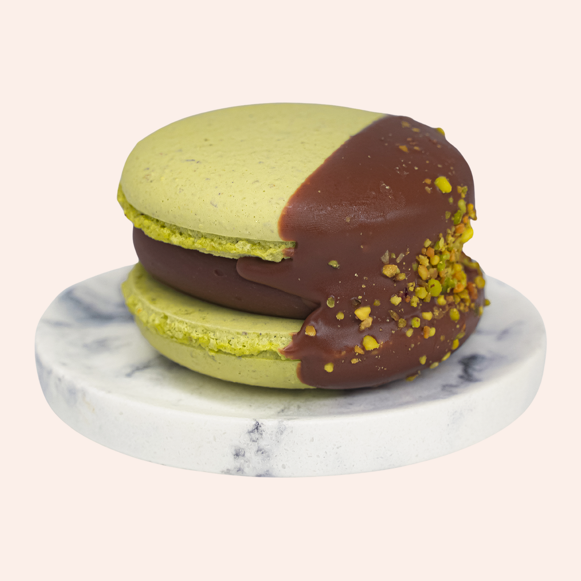 Crafted with premium pistachio butter, white chocolate, and a touch of cocoa butter, these velvety French cookies deliver a perfectly balanced nutty-sweet profile in every bite.