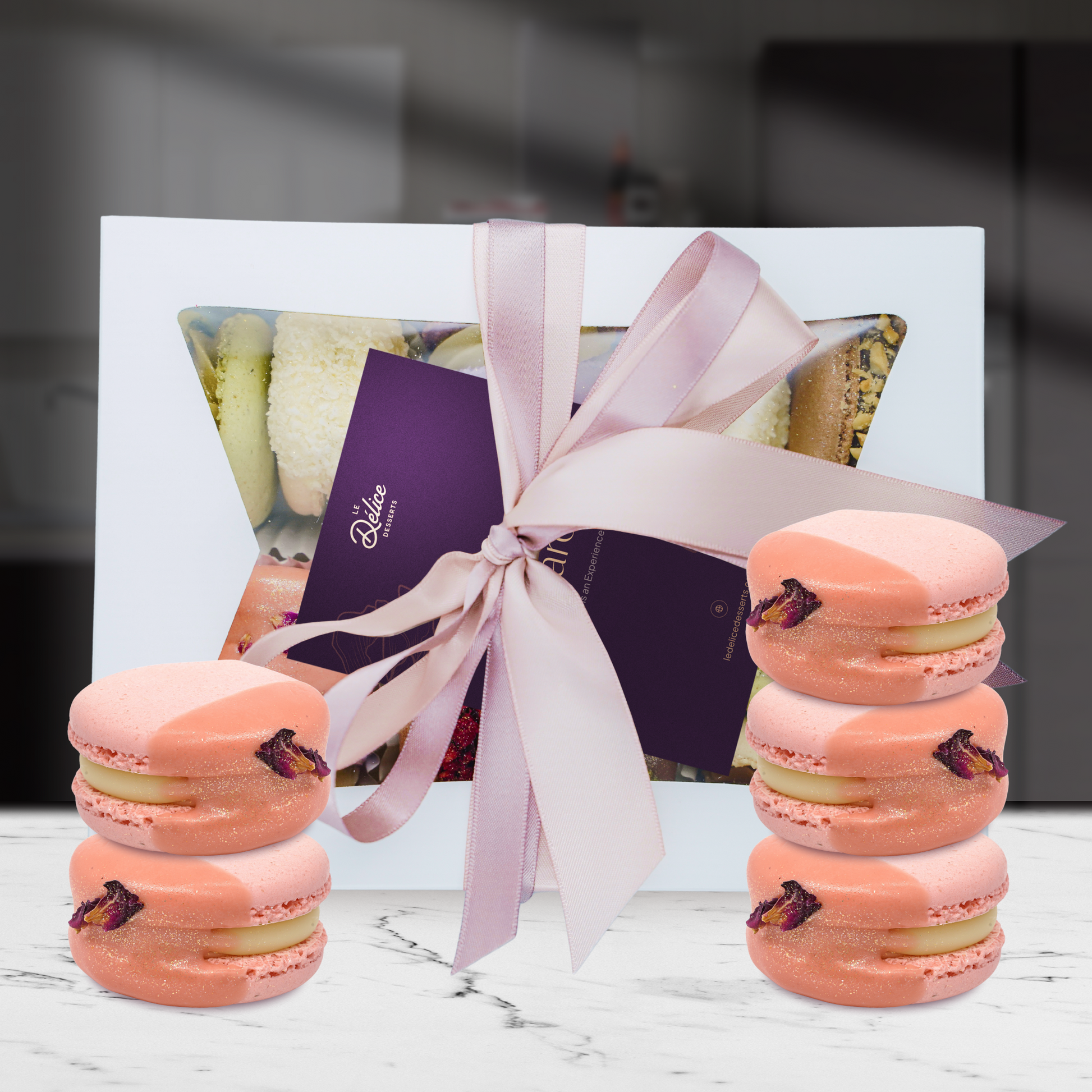 Delicate and luxurious, our Rose Raspberry Lychee Macarons by Le Délice offer a truly elegant experience.