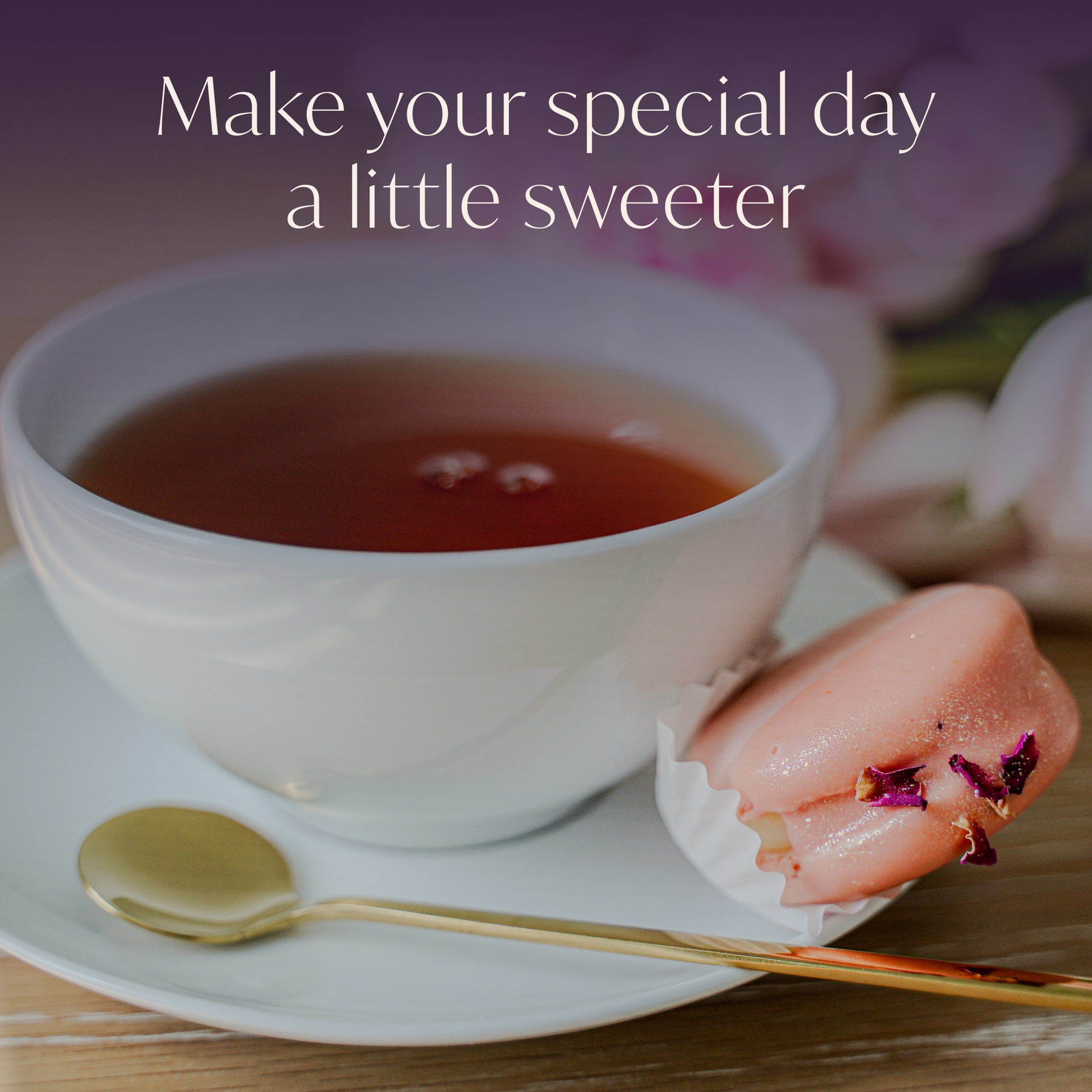 Infused with fragrant rose extract, real raspberry and lychee purées, and silky white chocolate ganache, each bite is a refined harmony of floral and fruity notes.