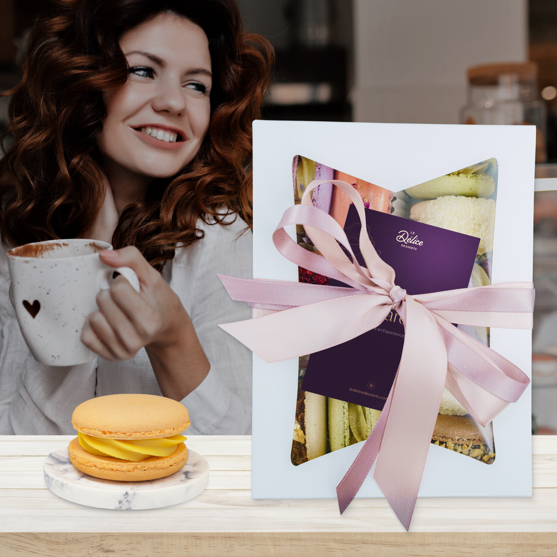 Surprise someone special (or yourself!) with the tropical indulgence of our Mango Passion Fruit Macarons by Le Délice.