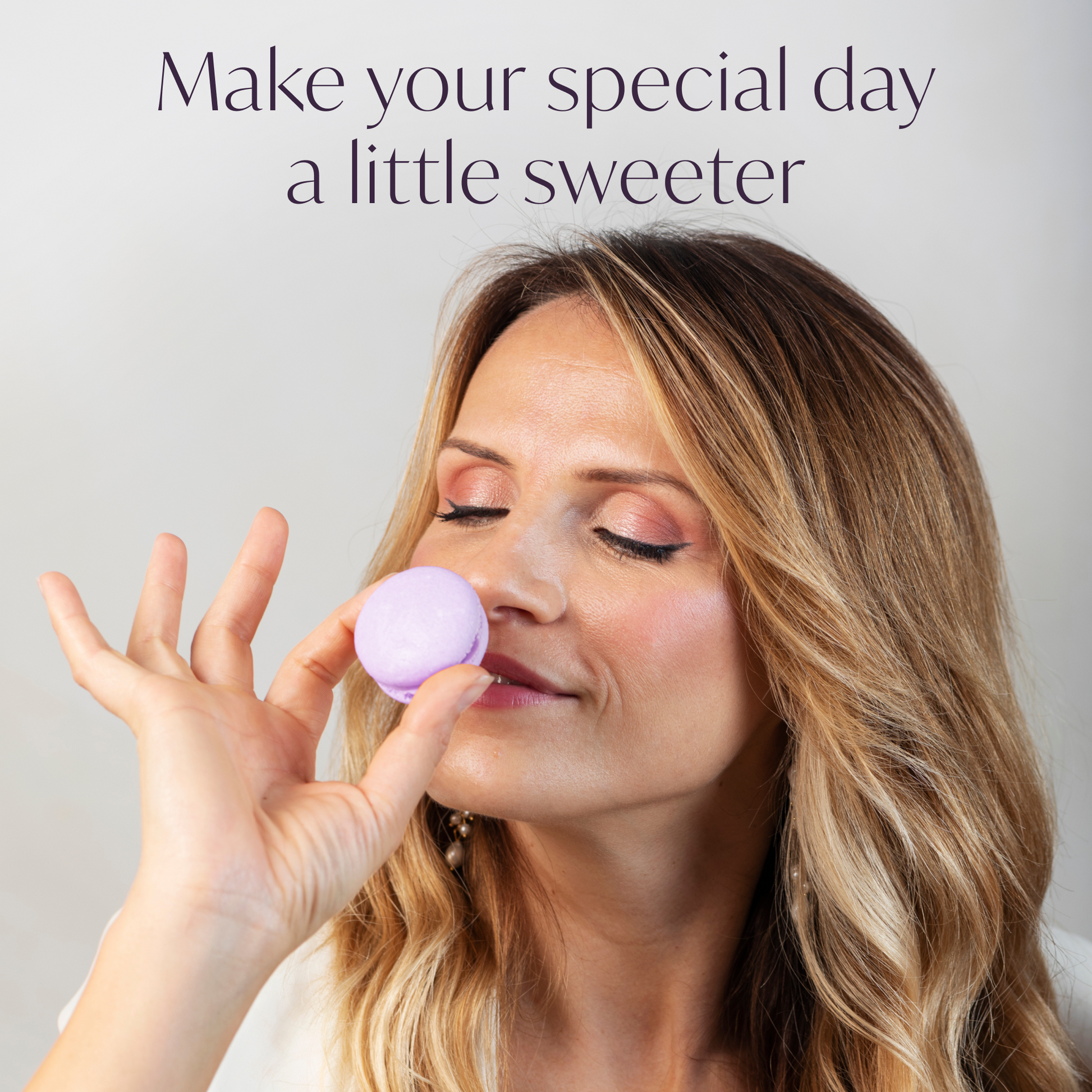 Delicate and aromatic, our Lavender Blueberry Macarons by Le Délice bring a soothing and sophisticated twist to your dessert table.